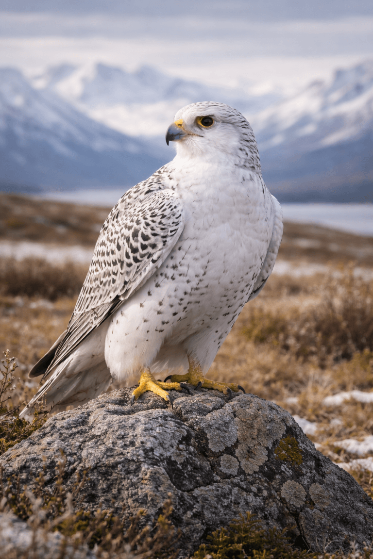 The Gyrfalcon feels like it belongs to wind and stone. You won’t usually see one casually. When you do, it’s often a fast shape cutting across tundra or perched high on a cliff face, scanning open country below.