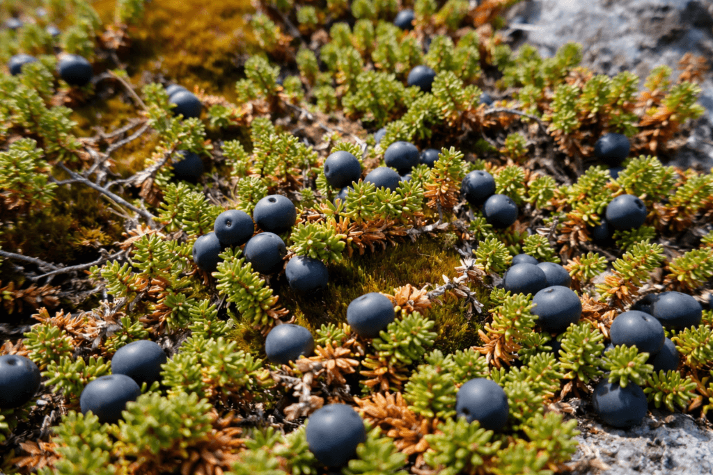 If the landscape feels open, windy, and low to the ground, crowberries are often nearby.