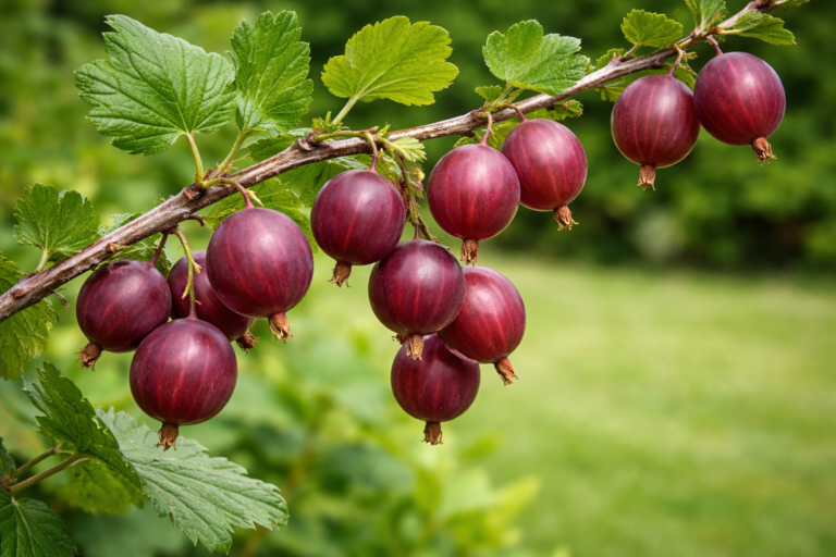Gooseberries (Ribes spp.) are deciduous shrubs that produce small, translucent berries.