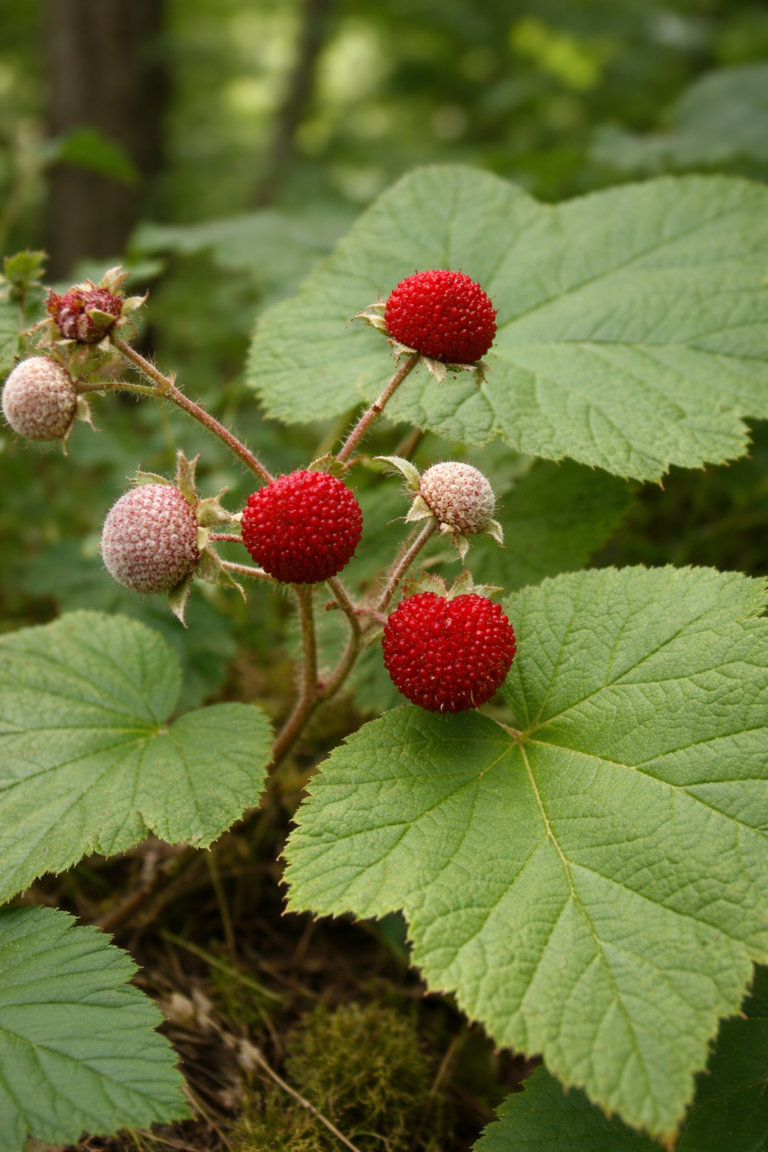 Thimbleberry is a soft, bright red berry found in parts of Alaska, known for its delicate texture and large, maple-like leaves. While it is edible, it is often included in cautionary discussions because it can be confused with other berry-producing plants.