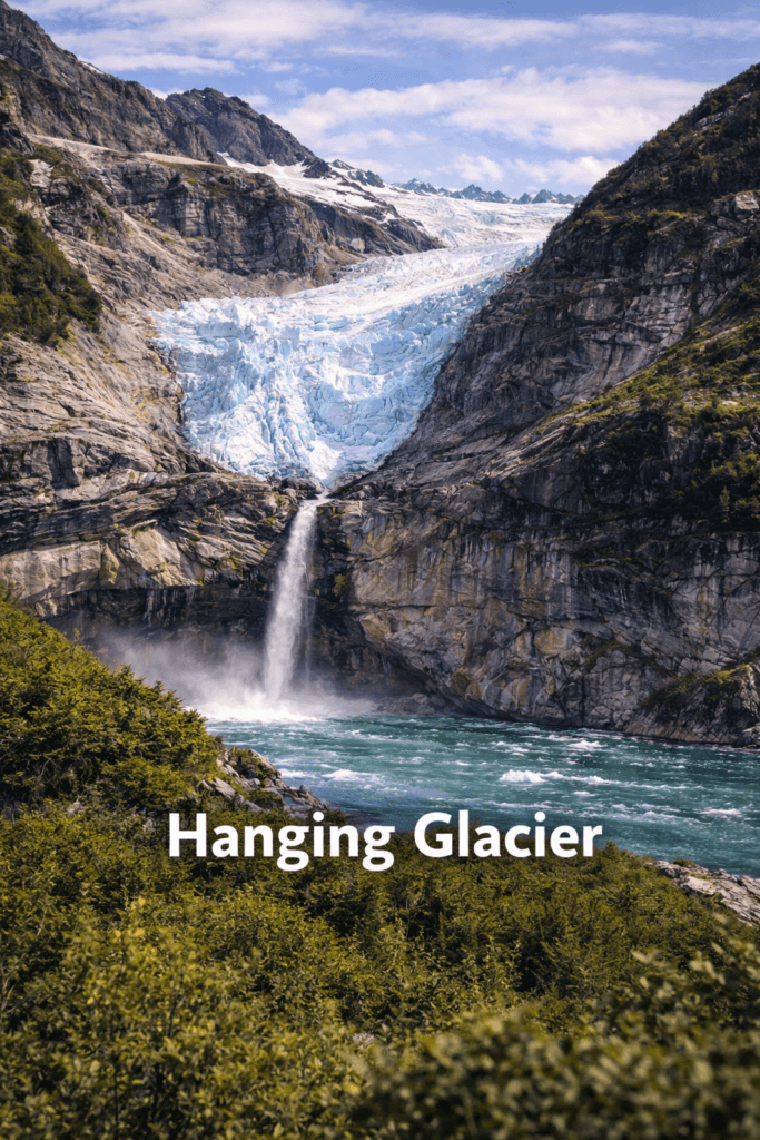 Ice from hanging glaciers may break off due to gravity and steep terrain, occasionally contributing to icefalls or avalanches. These glaciers are most commonly found in Alaska’s coastal mountain ranges and high alpine areas.