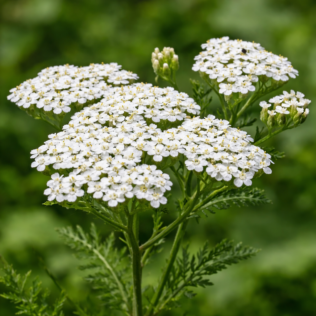 Yarrow (Achillea millefolium) is a perennial flowering plant known for its medicinal properties and resilience. It belongs to the daisy family and is easily recognized by its flat-topped clusters of tiny flowers.