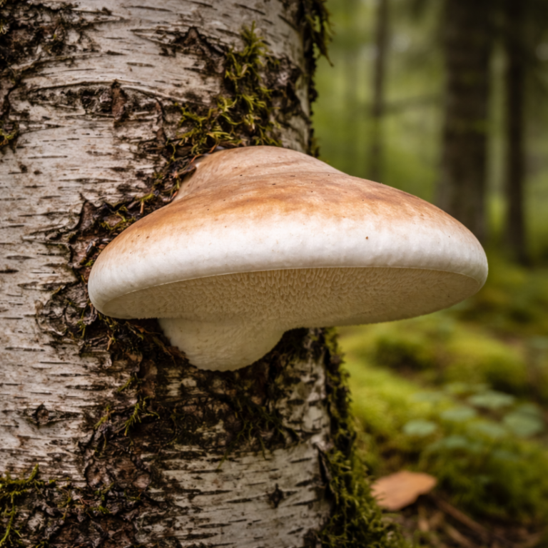 If you’re walking through a birch forest and see a round, shelf-like growth sticking out of a trunk, you’re likely looking at birch polypore.