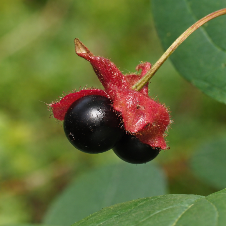 Black twinberry is a native shrub found across much of Alaska, recognized by its paired black berries and distinctive red bracts. While it may look interesting or even edible at first glance, it is considered a toxic plant and should not be consumed.
