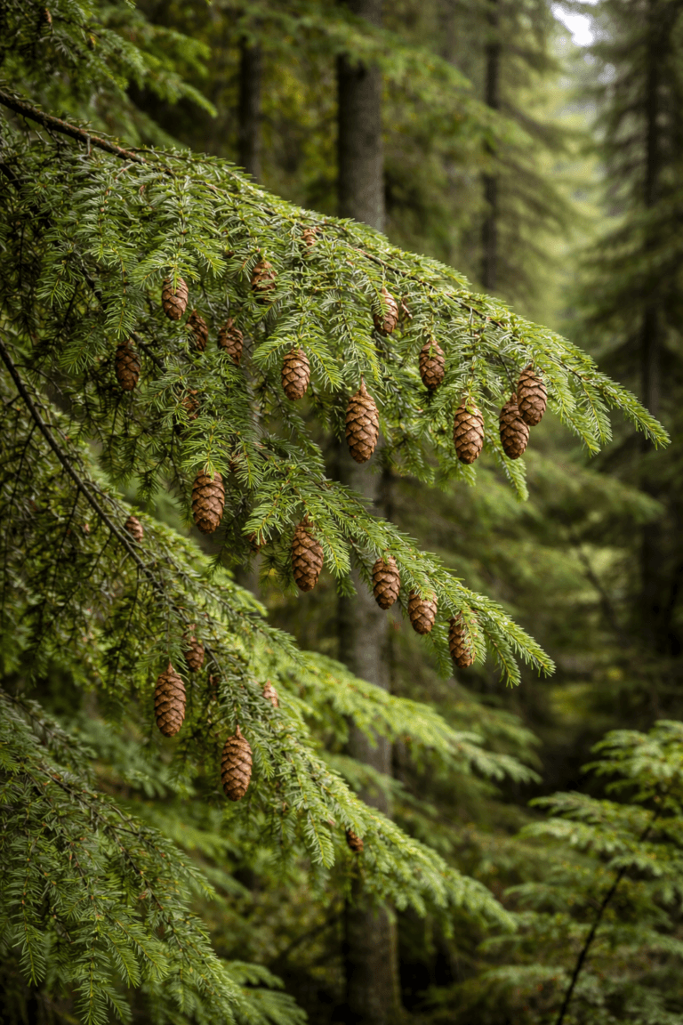 Tall, shadowy, and layered thick, this tree defines the coastal rainforest. It doesn’t grow straight and rigid like spruce. It leans. It droops. Its top leader often bends slightly to one side.