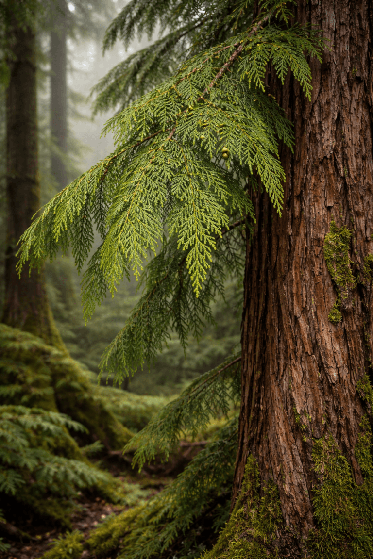 Yellow cedar doesn’t grow everywhere. It prefers specific coastal conditions, often tucked into misty slopes and high rainfall zones. When you find it, you’re usually in mature forest.