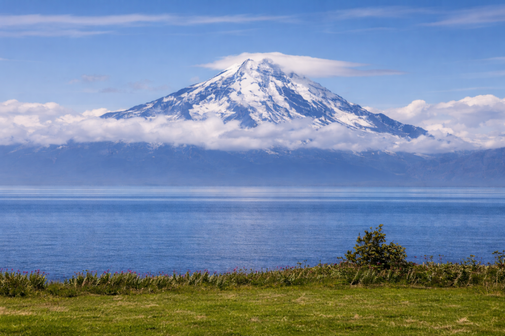 There’s no easy way to access Mount Redoubt directly. Most people experience it from a distance, either across Cook Inlet or from the air. On clear days, it stands out clearly on the horizon, especially when the light hits the snow and ice on its slopes.